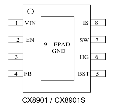 The CX8901X series employs fixed-frequency PWM control with a typical switching frequency of 100kHz. It enters skip-cycle mode during light loads to achieve high conversion efficiency. The CX8901X series integrates soft-start, over-temperature protection, output short-circuit protection, current limiting, and cycle-by-cycle current detection internally, enhancing system reliability. Packaged in ESOP-8L, the CX8901X series features minimal external components and is ideal for wide-input, high-power DC-DC buck applications.